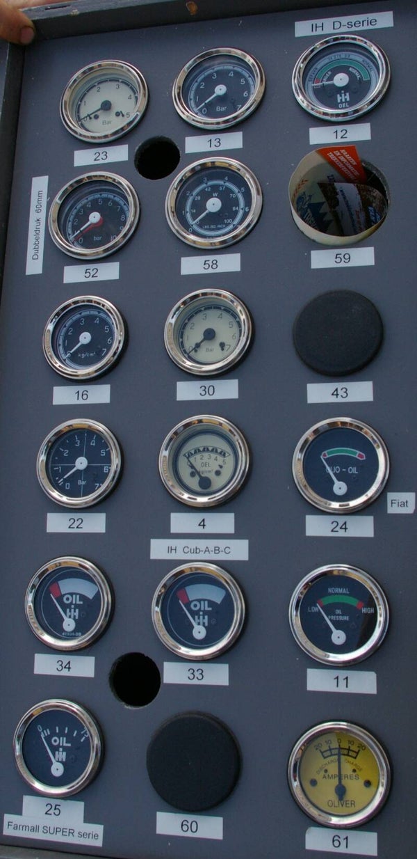 Die drei abgebildeten Anzeigen wurden im Original so bei Allgaier, Porsche-Diesel verbaut.